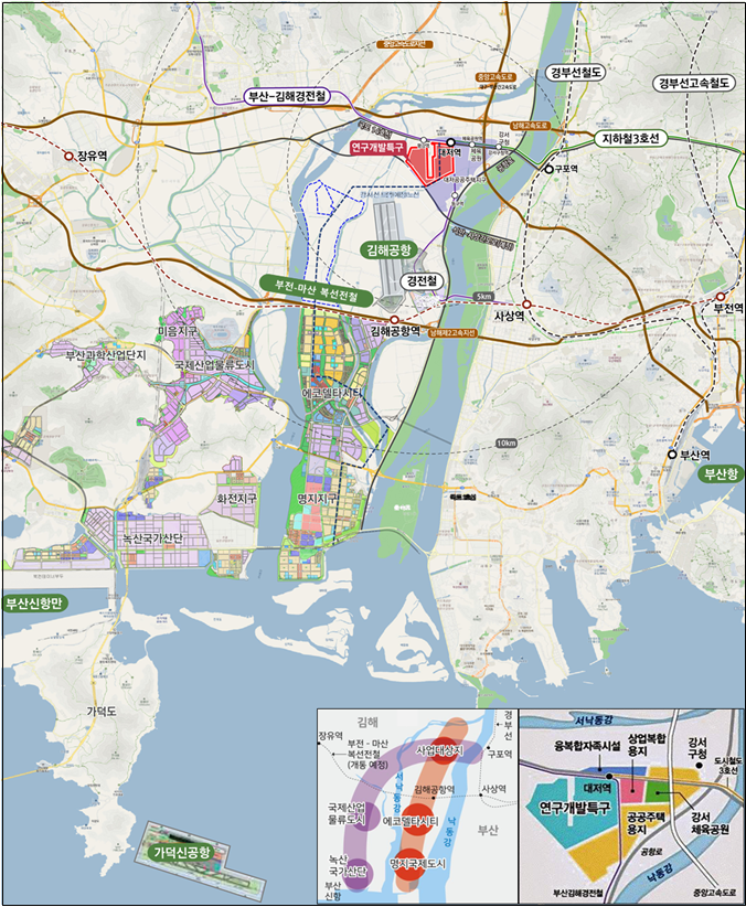 이 사업은 지역 주도 혁신성장을 위해 부산 강서구 대저동 일원에 174만4114㎡ 규모로 연구개발, 첨단산업, 전시·행사(컨벤션) 등으로 구성된 ‘부산연구개발특구(첨단복합지구)’를 조성하는 사업이다.