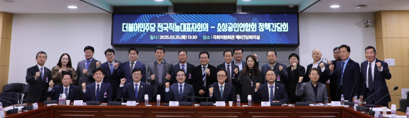 이날 간담회에는 송치영 소상공인연합회 회장을 비롯해 업종 단체장들과 지역회장단이 참석했으며 더불어민주당에서는 전국직능대표자회의 박홍근 공동의장, 이정문 정책위 수석부의장, 김원이 산자중기위 간사, 최기상 의원 등이 참석했다.