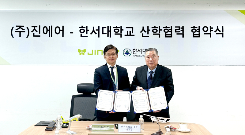 먼저 진에어는 지난 20일 한서대학교 항공기술교육원 및 비행교육원과 산학협력을 체결했다. 서울 강서구 진에어 마곡 사옥에서 진행된 협약식에는 박병률 진에어 대표이사와 함기선 한서대학교 총장 등이 참석했다.