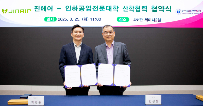 이어 25일 인하공업전문대학(이하 인하공전)도 정비 인재 양성을 위한 산학협력 업무협약을 맺었다. 협약식은 박병률 진에어 대표이사와 김성찬 인하공전 총장 등이 참석한 가운데 인천 미추홀구 인하공전에서 진행됐다.