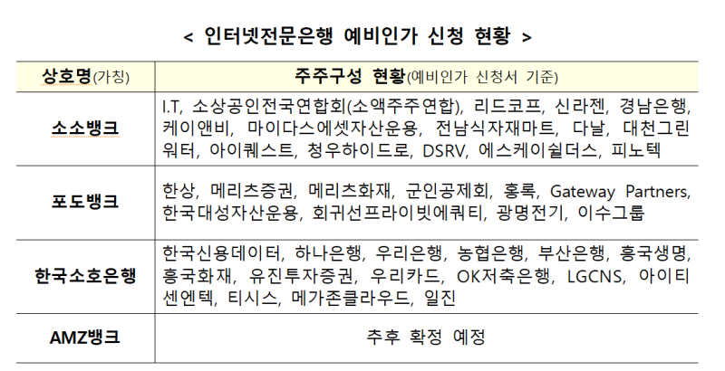 앞서, 이번 제4인뱅에 유력한 후보였던 더존뱅크와 유뱅크 컨소시엄은 지난 17일 불안정한 정국 상황 등을 이유로 예비인가 철회 의사를 밝혔다.