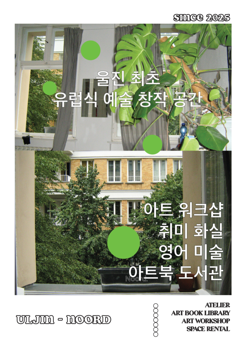 NOORD 화실에서는 울진 지역의 자연과 문화를 바탕으로 한 예술 활동이 이루어지며, 다양한 연령층을 위한 아크릴, 유화, 드로잉, 콜라쥬, 일러스트, 스크랩북 등 폭넓은 장르의 글로벌 미술 교육과 창작 프로그램이 제공된다.