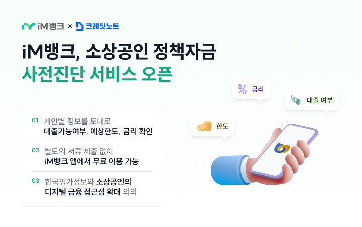 iM뱅크·한국평가정보, 소상공인 정책자금 사전진단 앱 서비스 런칭