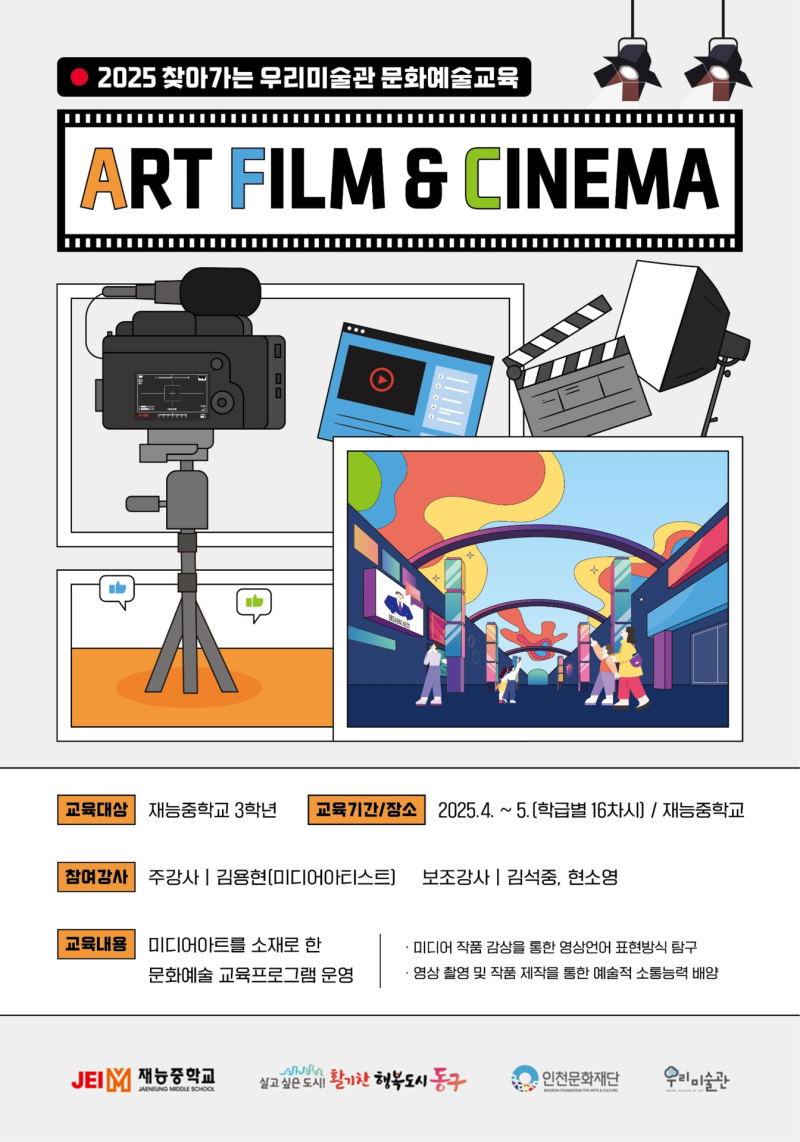 이번 교육은 김용현 미디어아티스트가 강사로 참여해, 재능중학교 3학년 학생들이 직접 영화를 기획·촬영·출연하는 방식으로 총 16차시에 걸쳐 운영되며, 4~5월 동안 진행된다고 밝혔습니다.