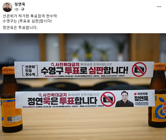 앞서 선관위는 ‘투표심판’ 현수막은 허용했지만, ‘정연욱은 투표합니다’라는 현수막은 불허했다.