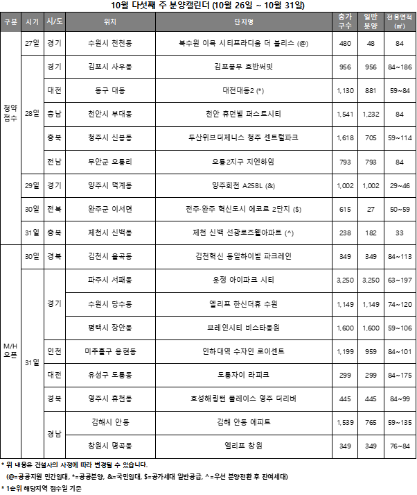 - [부동산 캘린더] 내주 3439공급…"지방 위주 공급"