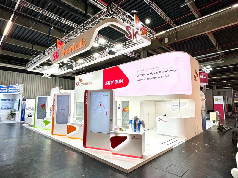 SK케미칼은 유럽 내 코팅 및 페인트 분야를 적극 공략하기 위해 “책임 있는 미래를 위한 지속 가능한 설루션(Sustainable solutions for a responsible tomorrow)”이라는 슬로건을 내걸고 지속가능 소재인 스카이본(SKYBON), 스카이씨에이치디엠(SKYCHDM), 에코트리온(ECOTRION) 등을 전시했다.