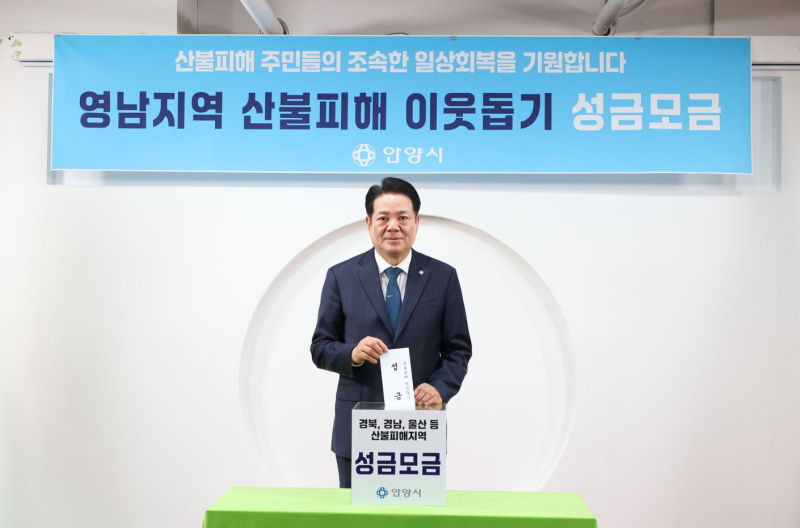 시에 따르면, 최대호 시장과 4급 이상 간부 공무원, 박준모 안양시의장, 이상하 농협 안양시지부장은 31일 경북·경남·울산 지역 이재민을 돕기 위한 자율 성금 모금에 동참했습니다. 시는 앞서 지난 27일부터 공직자 대상 성금 모금을 시작했으며, 오는 4월 30일까지 시민과 민간단체를 대상으로도 참여를 확대할 예정입니다.