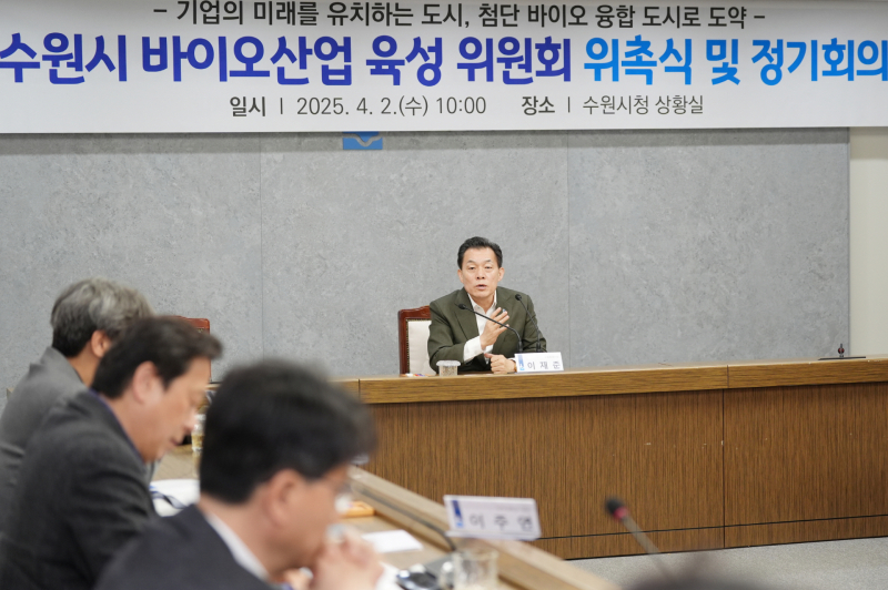 시에 따르면, 2일 시청 상황실에서 육성위원 위촉식과 첫 정기회의가 열렸으며, 이재준 수원시장이 위원 14명에게 위촉장을 수여했습니다. 이날 회의에서는 이주연 아주대학교 산업공학과 교수가 위원장으로, CJ제일제당 신용욱 상무가 부위원장으로 선출됐으며, 바이오산업 활성화 추진계획도 함께 공유됐습니다.