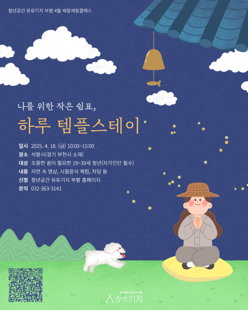 이번 프로그램은 ‘나를 위한 작은 쉼표, 하루 템플스테이’로, 18일 부천 석왕사에서 진행될 예정이며, 만 19세~39세 청년 20명을 대상으로 선발한다고 밝혔습니다.