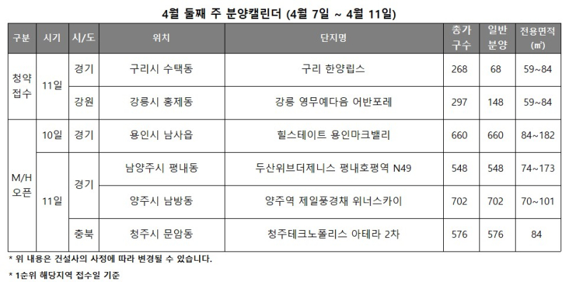 - [부동산 캘린더] 내주 548가구 분양…"모델하우스 10곳 오픈"