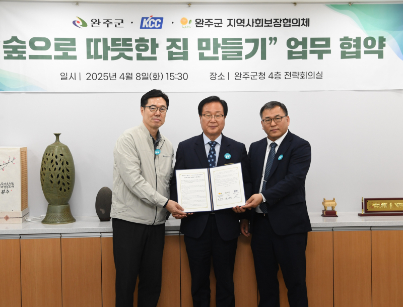 8일 완주군청에서 열린 이번 협약에 따라 KCC 전주공장은 4,000만 원의 성금을 군에 기탁하고, 완주군은 수혜대상자를 선정하며, 완주군지역사회보장협의체는 창호와 보일러 교체, 도배 및 장판 교체 등 실질적인 주거환경 개선 사업을 수행한다.