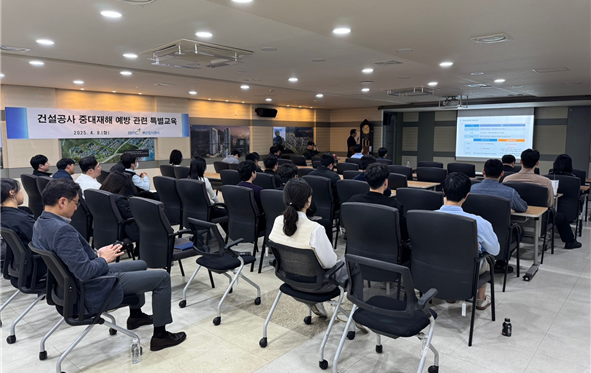 이번 교육은 부산 기장군 리조트 공사현장 화재사고, 경기도 평택 화양지구 공동주택 신축공사 추락사고 등 최근 건설공사 현장에서 빈번히 발생하고 있는 중대재해에 선제적으로 대응하고, 직원들의 안전관리 역량을 강화하고자 마련됐다.