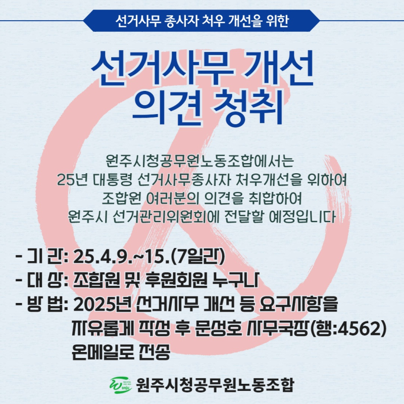 원주시청 공무원노동조합, 21대 대선 선거사무 관련 조합원 의견 청취