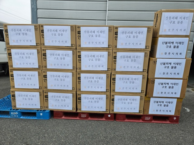남관우 의장은 “이번 산불로 피해를 입은 이재민과 희생자 유가족들에게 깊은 위로의 말씀을 드린다”며 “구호물품이 일상을 회복하는데 작은 보탬이 되길바라며 앞으로도 지방정부 간 협력과 연대를 강화해 어려움을 함께 나누는 전주시의회가 되겠다”고 말했다.