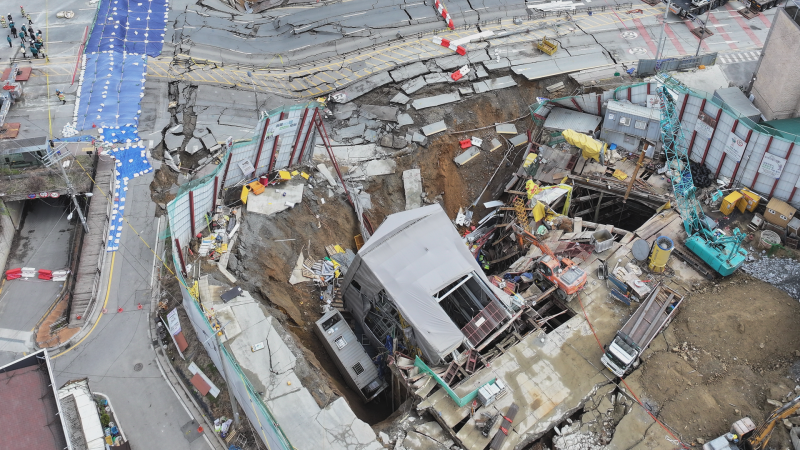 폭탄을 맞은 듯 도로가 내려앉고 철근이 엿가락처럼 휘어져 있습니다.