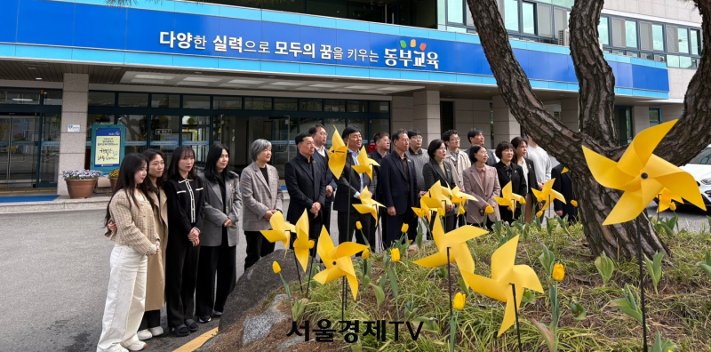 이성철 교육장과 직원들은 세월호 참사를 추모하는 영상을 시청한 후 청사 주변 화단에 노란 바람개비를 함께 설치하며 희생자들을 애도했다.