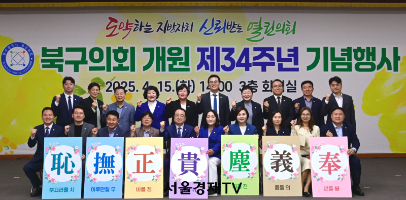 [서울경제TV 광주⋅전남=나윤상 기자] 광주 북구의회가 15일 북구청 3층 대회의실에서 개원 34주년 기념행사를 개최했다.