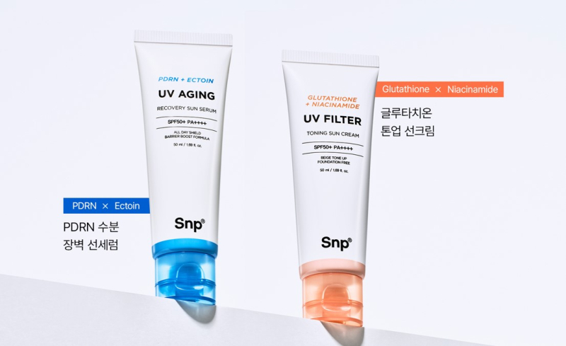 Snp에 따르면 올리브영을 통해 선보이는 이번 신제품은 'PDRN 엑토인 UV 에이징 리커버리 선 세럼', '글루타치온 나이아신아마이드 UV 필터 토닝 선크림'이다. 두 제품 모두 SPF 50+ PA++++의 강력한 자외선 차단력을 갖춘 가운데 일상 속 노출되는 UV로 인한 피부 노화, 건조함, 톤 저하 등을 폭넓게 케어할 수 있도록 고안됐다. 특히 이번 제품은 50ml 정품 용량에 20ml 추가 용량이 포함된 기획 세트로 실용성과 경제성까지 더했다는 평가다.