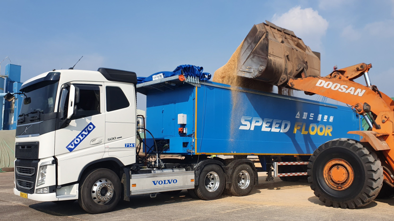스피드플로어의 수평 상하차 장치는 기존 덤프트럭이 적재함을 들어올려 화물을 하역하는 구조와 달리, 무게중심을 수직이 아닌 수평으로 이동시켜 하역하는 방식이다. 이로 인해 차량 전복 사고를 예방하고, 비산먼지와 소음 발생을 최소화하여 도시 내 건설현장의 민원 발생도 획기적으로 줄일 수 있다.
