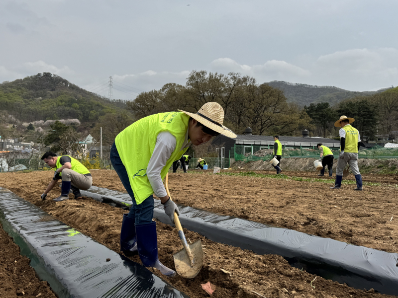 황준구 부행장 등 임직원, 안산 농가서 비닐피복·아주심기 등 구슬땀