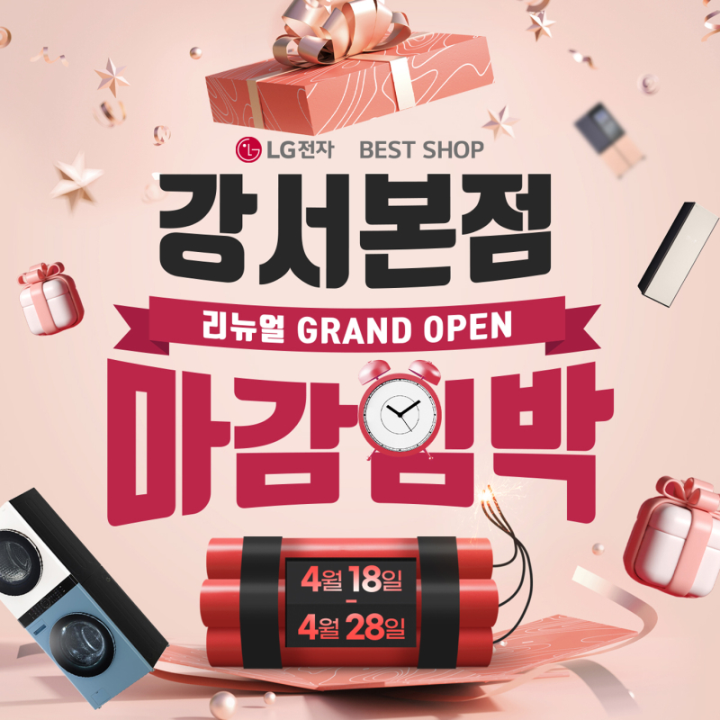 [서울경제TV=고원희 인턴기자] 프리미엄 가전매장 LG전자 베스트샵 강서본점은 리뉴얼 오픈 기념 마감 가전행사를 이달 18일부터 28일까지 실시한다고 밝혔다.
