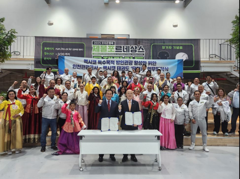 [서울경제TV 인천=김혜준 기자] 인천관광공사가 멕시코 태권도장 ‘무덕관’과 손잡고 중남미 태권도 수련생 유치를 위한 특수목적 관광 활성화에 나섰다.