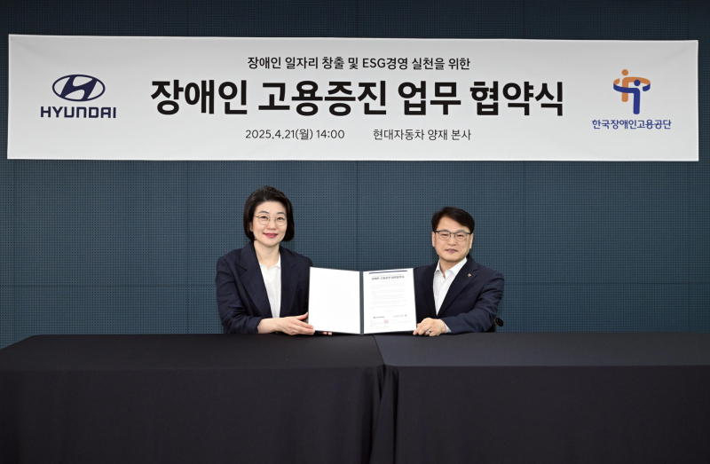현대차와 한국장애인고용공단은 이번 협약을 통해 지속적인 장애인 고용 확대와 고용 안정을 위해 협력 체계를 구축하고, 장애인 친화 근무환경과 긍정적 인식 기반이 조성될 수 있도록 힘을 모으기로 했다.
