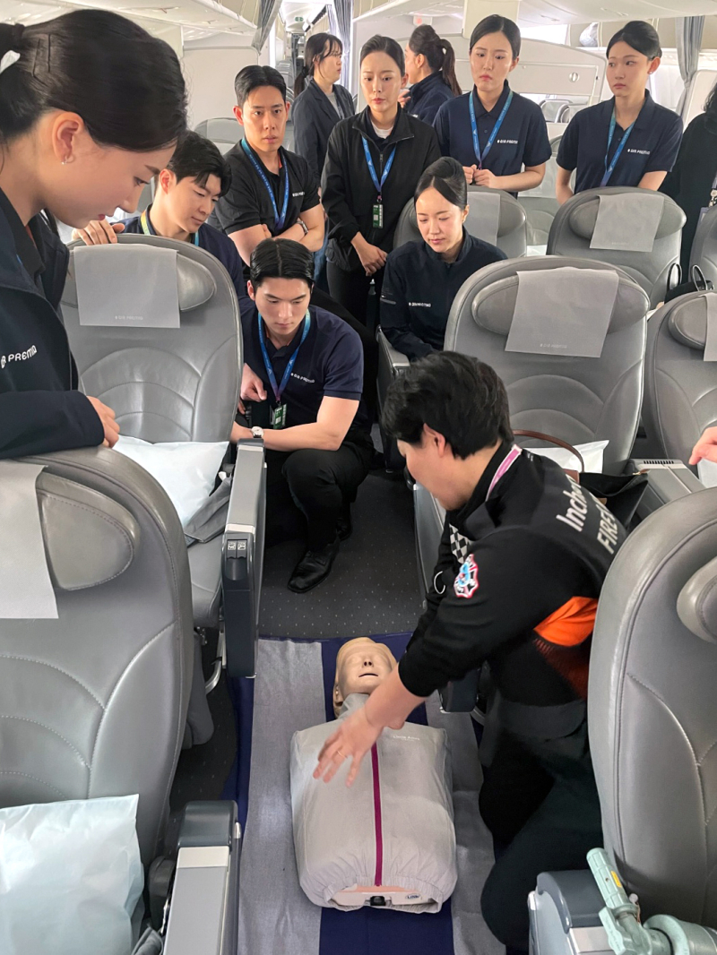 훈련은 인천국제공항 내에 위치한 공항소방대 교육장에서의 이론 교육을 시작으로, 실제 에어프레미아 항공기 내에서의 현장 실습까지 이어지는 실전 중심의 프로그램으로 구성됐다.