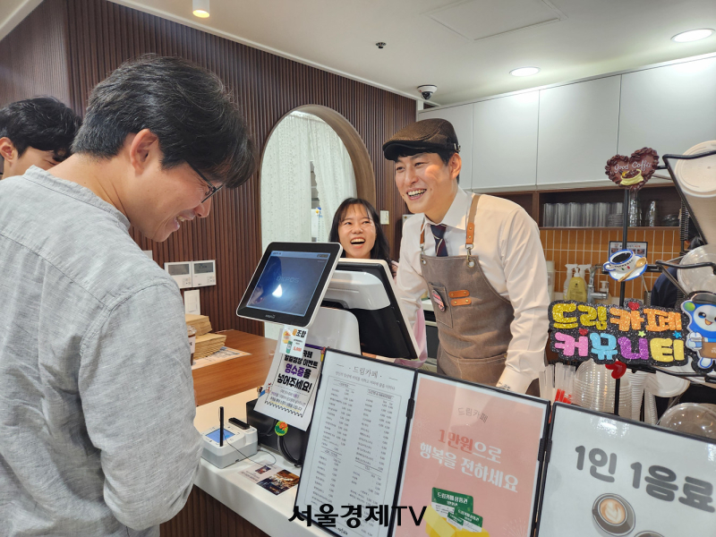 [서울경제TV 광주·전남=고병채 기자] 전남 광양시의회 최대원 의장이 중증장애인 창업형 일자리 사업으로 운영 중인 드림카페 커뮤니티센터점에서 '일일 점장'으로 나서며 일터에서 일하는 장애인들을 격려했다.