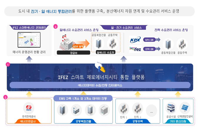 인천경제자유구역청은 산업통상자원부 공모사업에 선정돼 국비 포함 총 15억 원의 예산을 확보하고, ‘스마트 제로에너지시티 통합관리 플랫폼’ 구축에 착수했다고 23일 밝혔다.