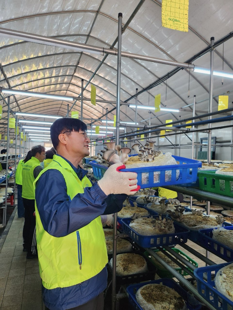 이날 일손돕기에는 박내춘 개인디지털금융부문 부행장을 비롯해 개인고객부, 개인디지털플랫폼부, 고객행복센터 임직원 약 30여명이 참여해 버섯 포장 및 배지 솎기 작업에 나섰다. 또한 작업 이후에는 인근 마을에서 쓰레기를 수거하는 플로깅 활동을 통해 ESG경영 실천에도 힘을 보탰다.