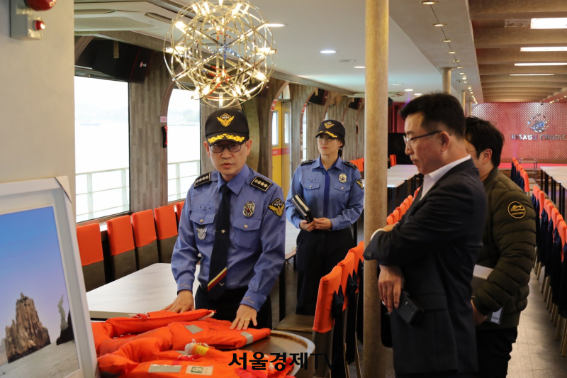 김 서장은 200명 이상이 승선하는 고위험 선박 및 차도선, 유람선 '미남호', '이사부크루즈호' 등 대형 유선의 안전관리 상태를 직접 확인하고 ▲인명구조요원 배치 ▲구명설비 ▲승하선 시설 ▲대응체계 전반을 점검했다.