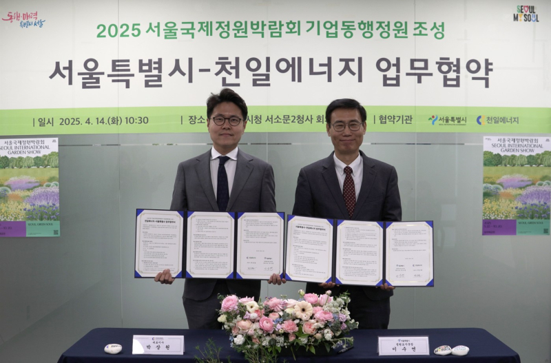[서울경제TV=정창신기자] 천일에너지는 서울시와 ‘2025 서울국제정원박람회 기업동행정원’ 조성을 위한 업무협약을 체결했다고 25일 밝혔다.