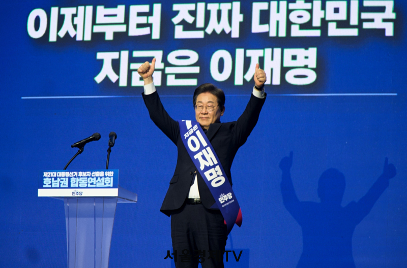 [서울경제TV 광주⋅전남=나윤상 기자] 더불어민주당 대선 후보 선출을 위한 호남권 경선에서 이재명 후보가 88.69% 득표율로 압승했다.