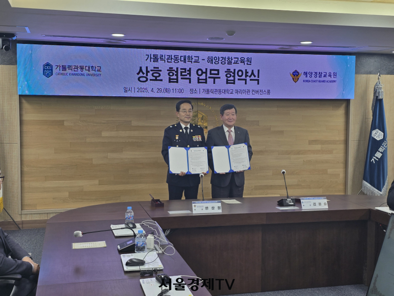 해양경찰교육원(원장 한상철)과 가톨릭관동대학교(총장 김용승)는 29일 강원도 강릉에서 업무협약을 체결하고, 학문과 실무를 연계한 체계적인 인재 육성에 협력하기로 했다.