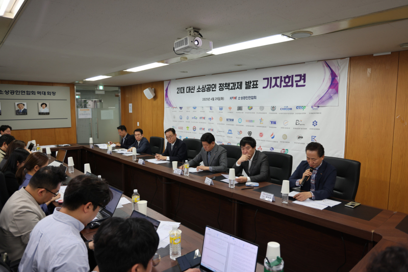 서울 여의도 소상공인연합회 회의실에서 ‘21대 대선 소상공인 정책과제 발표 기자회견’을 개최한 소상공인연합회는 △ 위기 극복 △ 지원·인프라 강화 △ 법·제도 개선 △ 사회안전망 구축 △ 혁신성장 기반 구축 등 ‘5대 아젠다’를 중심으로 핵심 25대 과제, 분야별 85대 과제 등 총 110여개에 달하는 정책과제를 선정·발표했다.