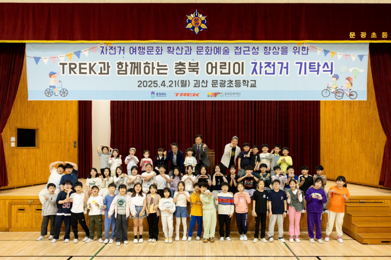 트렉, 충북 괴산 문광초에 3000만원 상당 자전거·헬멧 전달