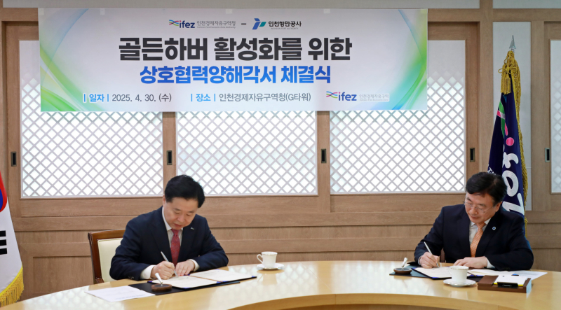 [서울경제TV 인천=김혜준 기자] 인천항만공사와 인천경제자유구역청이 송도 골든하버 프로젝트 민간 투자 유치를 위한 업무협약을 체결했습니다.