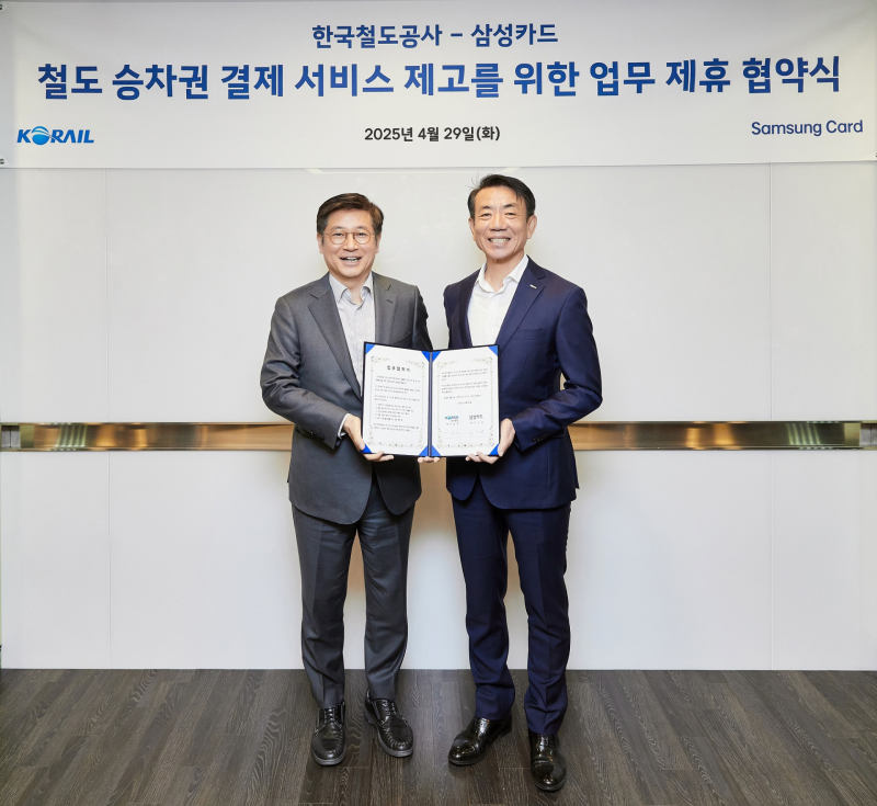 삼성카드와 코레일은 이번 협약을 통해 국민이 철도를 보다 편리하게 이용할 수 있도록 승차권 구매 서비스 개선 및 공동 마케팅 부문에서 협력하기로 했다.