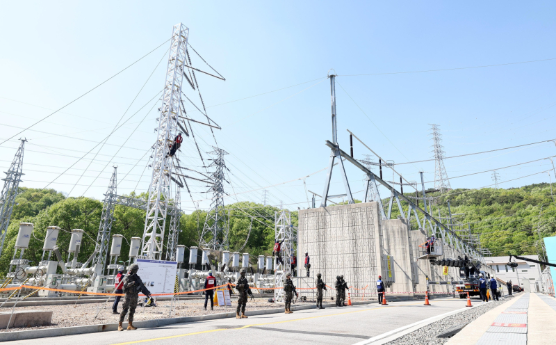 한전은 매년 시행되는 안전한국훈련에서 탁월한 재난대응 능력을 인정받아 올해에도 시범훈련기관으로 선정됐다. 지진과 전력설비 고장으로 인한 광역 정전 등 복합재난 상황을 가정해 초동대응부터 전력 설비를 신속 복구하는 과정에서의 재난 대응체계를 종합 검증했으며, 충주시청과 건국대학교 충주병원 관계자 40여 명이 참관해 실제 대응체계를 확인했다.