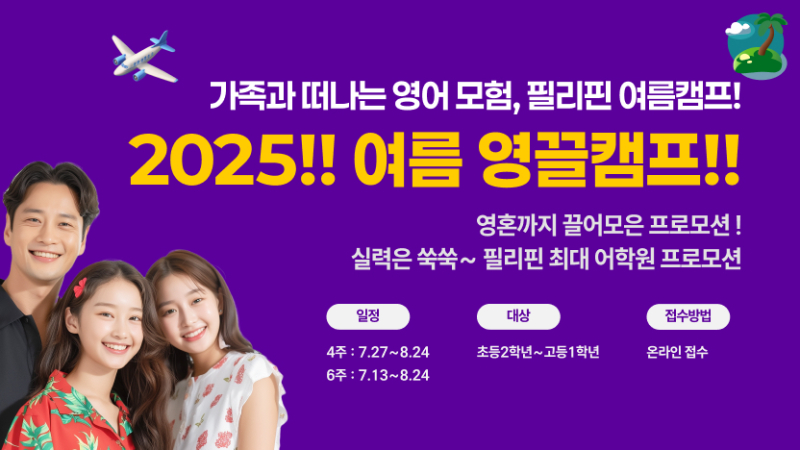 이번 캠프는 4주 과정(7월 27일~8월 24일)과 6주 과정(7월 13일~8월 24일) 두 가지 일정으로 진행되며, 현재 조기 등록 시 60만 원 할인 혜택을 제공한다.
