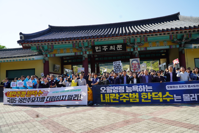 이들은 “한 전 총리가 5⋅18민주묘지를 참배하며 민주주의의 가치를 되새기고 민주주의 정신 계승과 국민대통합을 말하고 있지만 이는 언어도단이다”면사 “그는 국민의 가슴에 총구를 겨눈 내란 수괴의 파면을 막기 위해 민주주의 최후 보루인 헌법을 유린하면서 헌법재판관의 임명을 거부했던 자다”고 비난했다.