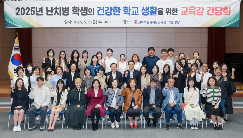 전북자치도교육청은 2일 도교육청 2층 강당에서 도내 1형 당뇨 및 희귀난치질환 학부모 및 보건교사 50여 명과 ‘2025 난치병 학생의 건강한 학교생활을 위한 교육감 간담회’를 개최했다.
