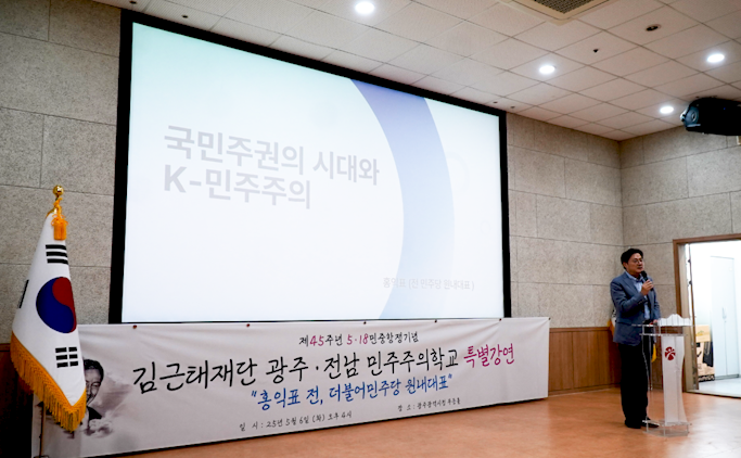 6일 광주시청 무등홀에서 홍 위원장의 '국민주권 시대와 K-민주주의'이란 주제로 강연이 열렸다.