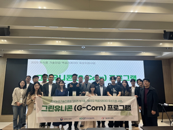 ‘그린 유니콘 G-Corn 프로그램’은 농림축산식품부가 주최, 한국농업기술진흥원이 주관하고 와이앤아처가 운영하는 농식품분야 특화 액셀러레이팅 프로그램이다. 전국 단위의 농식품 기술창업분야 우수기업을 발굴해 유니콘기업으로의 성장을 목표로 참여 기업에게 특화된 선택형 액셀러레이팅 지원과 이를 기반으로 글로벌 진출 및 투자연계를 지원한다.