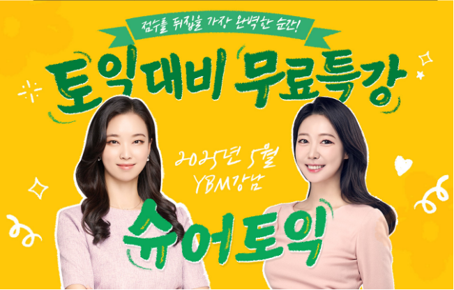 5월 토익 대비 무료 특강은 YBM인강 슈어토익 LC최지아, RC윤아연 강사가 진행한다. 이번에 진행되는 토익대비 특강은 LC파트2,3와 RC파트5에 대한 핵심전략을 알려준다. 토익대비특강은 YBM인강에 홈페이지에서 누구나 무료로 들을 수 있다.