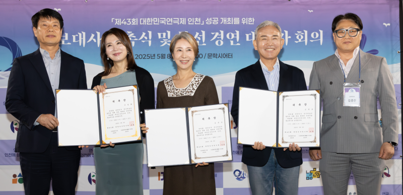 [서울경제TV 인천=김혜준 기자] 인천시가 7월 개최될 ‘제43회 대한민국연극제 인천’의 홍보대사로 송옥숙, 손병호, 이일화, 예지원, 장영남 배우를 위촉했습니다.