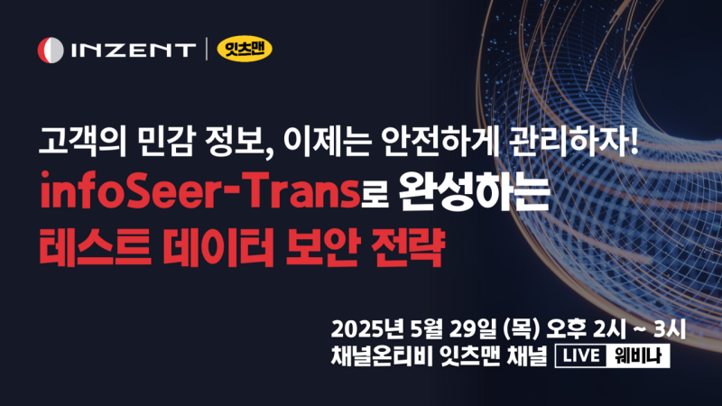인젠트는 이번 웨비나에서 테스트 데이터 변환 솔루션을 사각지대에 대한 해답으로 제시할 예정이다. 인젠트 데이터플랫폼 사업그룹의 이용우 이사가 연사로 나서 테스트 데이터 변환 솔루션의 필요성과 인젠트 infoSeer-Trans(인포시어-트랜스)의 통합 기능에 대해 소개한다.