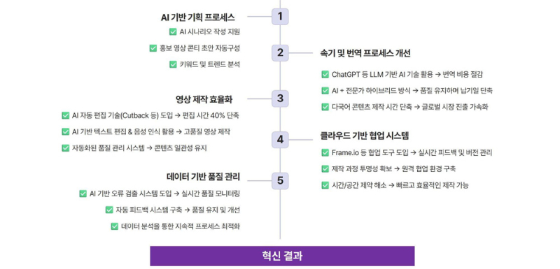 특히 AI 자동 편집, 실시간 오류 검출, 클라우드 기반 협업 시스템까지 탑재된 제작 환경은 공공 교육기관이 요구하는 품질과 납기 기준을 안정적으로 충족시킨다는 평가를 받고 있다.